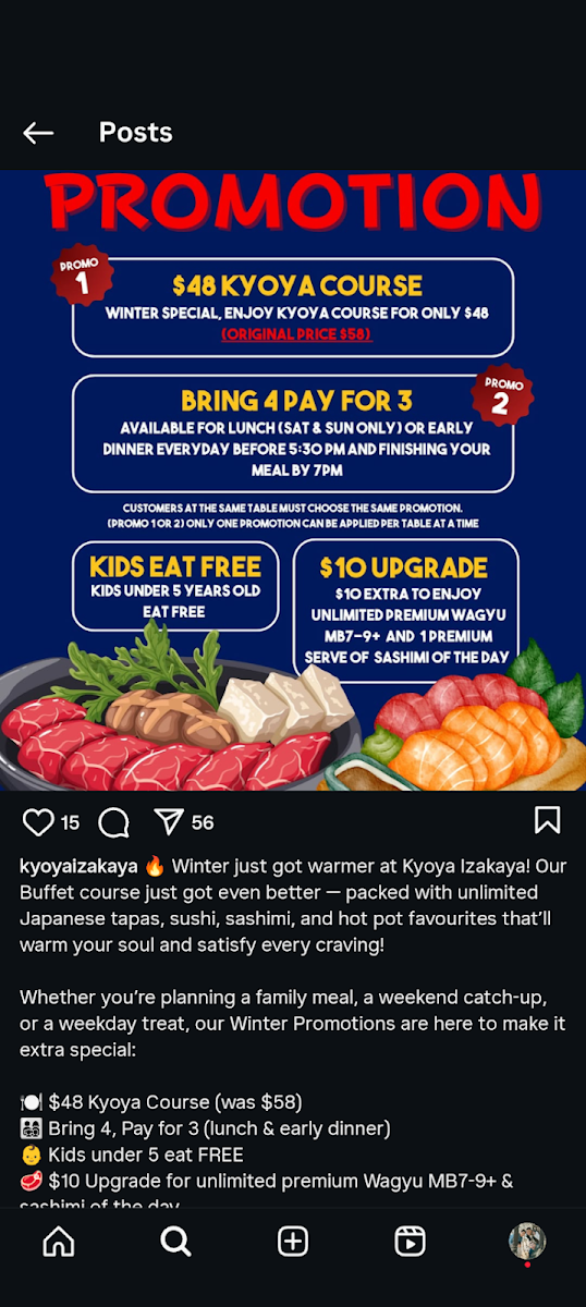 Step into Kyo Ya Izakaya Bar in Wentworth Point and embark on a culinary journey that celebrates the vibrant and rich flavors of Japanese cuisine! Nestled conveniently at Level 1/5 Footbridge Bvd, our menu showcases an array of mouth-watering dishes designed to tantalize your taste buds. Whether you're drawn to the succulent Unagi Don Set or the savory Gyu Don Set, there's something for everyone. Don’t miss our delightful Kaisen Don Set and the comforting Mentai Squid Udon that promises to warm your soul. For a unique twist, try our Eel Fried Rice or the luxurious Wagyu Beef Fried Rice. Sushi lovers will be delighted with options like the Mini Okinawa Sushi Set and our extravagant Kyo Ya Sushi Set, featuring 24 pieces of pure bliss. And for those who relish fresh flavors, our Deluxe Sashimi and Hokkaido Sushi Set are must-tries. Come indulge in the best of Japanese dining at Kyo Ya, where every bite is crafted to perfection!